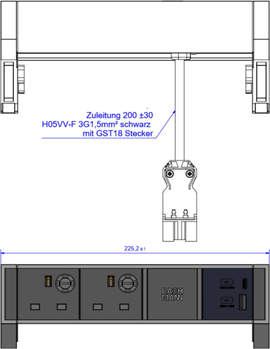 Bachmann DESK2 2xUK 1xUSB A&C 22W 0,2m (902.913)
