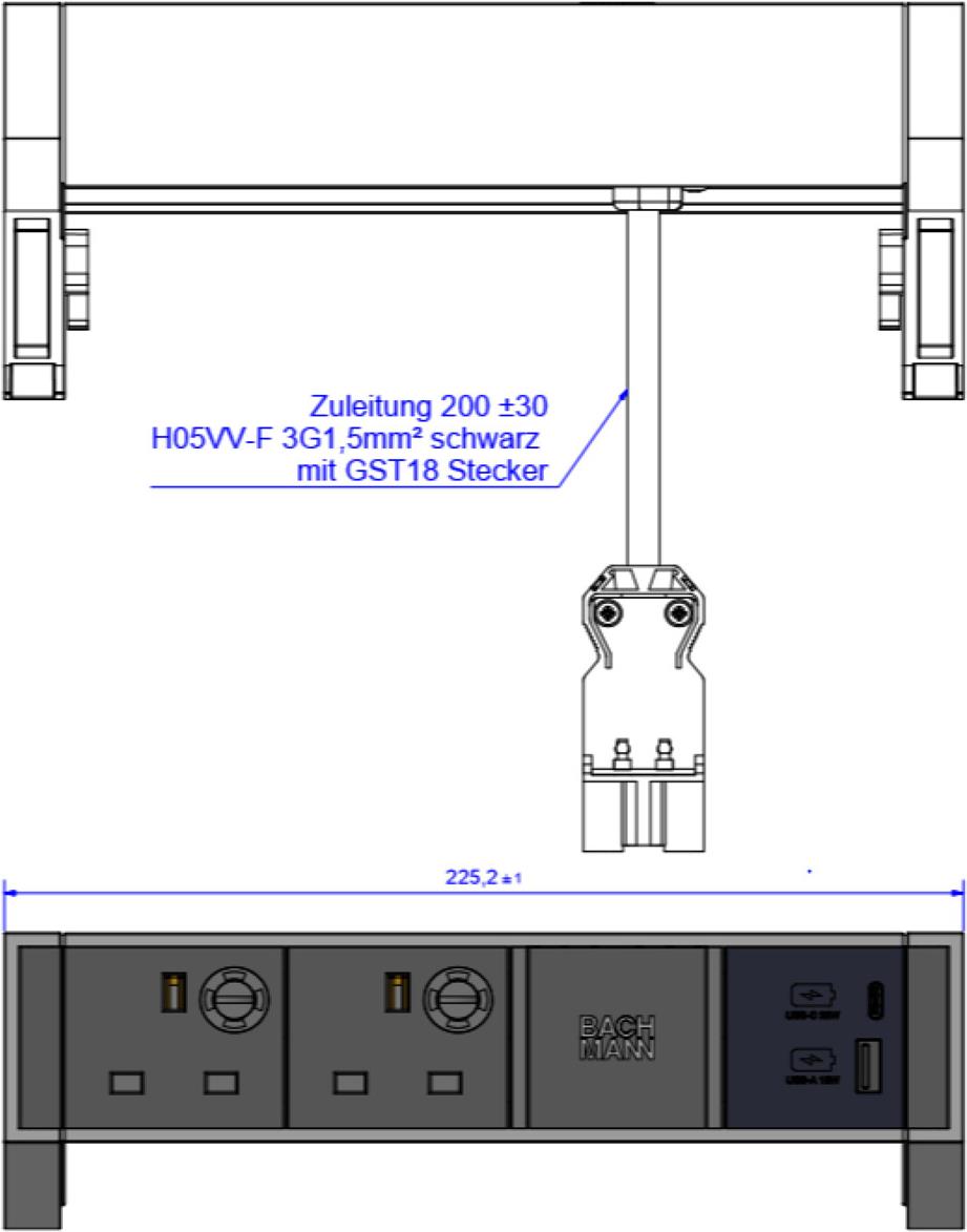 Bachmann DESK2 2xUK 1xUSB A&C 22W 0,2m (902.944)