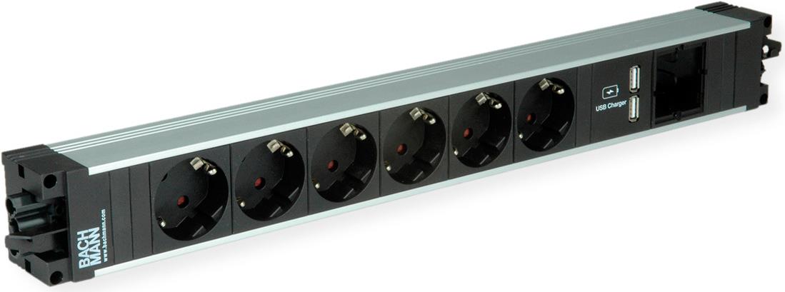BACHMANN STEP ALU 6x Schutzkontakt 1x USB-Charger 1xABD (906.0846)