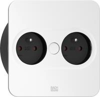 Bachmann TWIST 2 Metallische Abdeckscheibe eckig, weiß matt, ähnlich RAL 9010 30GE seidenmatt, 2xUTE Frankreich Steckdose schwarz mit erhöhtem Berührungsschutz, Zuleitung 2,0m H05VV-F3G1,5mm² schwarz mit Aderendhülsen und beigelegtem Schutzkontakt-Montagestecker (946.203)