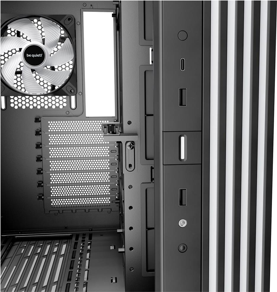 Doppelkammer-Layout, integriertes Kabelmanagement, VGA-Halter, austauschbare Staubfilter, vibrationsdämpfendes Design, Isolierungsmatten, drehbare PCI-E-Slots, 59,7 Liter Volumen, Reset- und Power-Taste, GPU-Halter, Back-Connect-Support |
