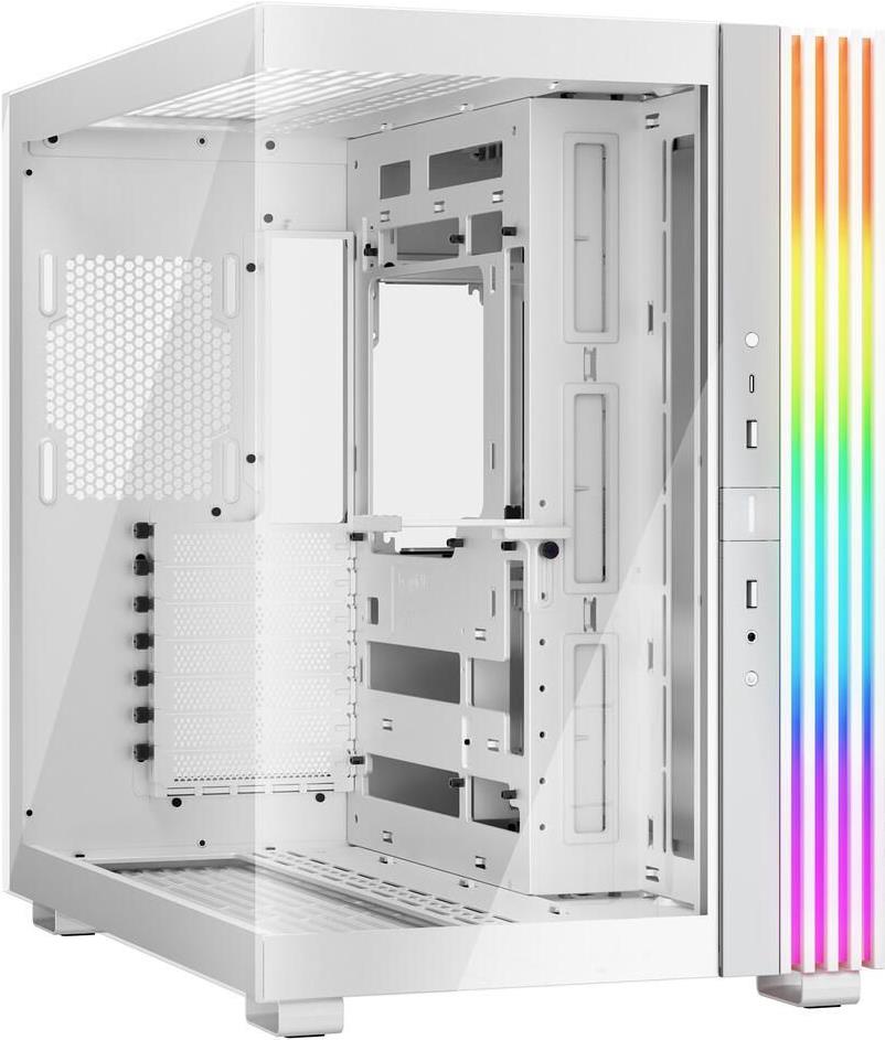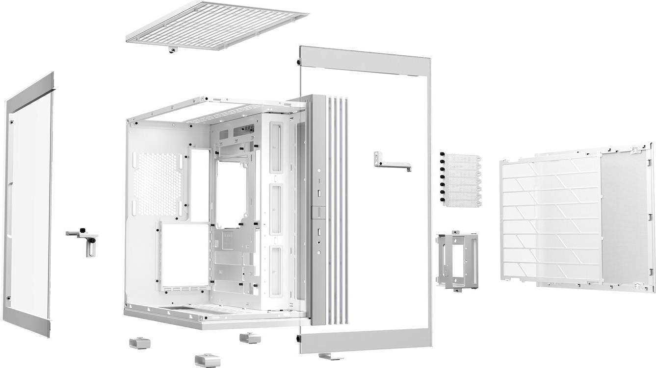 | Systemgehäuse-Merkmale | Vertikale/horizontale Ausrichtung, Doppelkammer-Layout, integriertes Kabelmanagement, VGA-Halter, austauschbarer Staubfilter, 3-poliger ARGB-Steckverbinder, Vibrationsdämpfendes Design, geeignet für vertikale Grafikkarten, drehbare PCI-E Slots, 59,7 Liter Kapazität, Reset-Taste, Power-Taste |