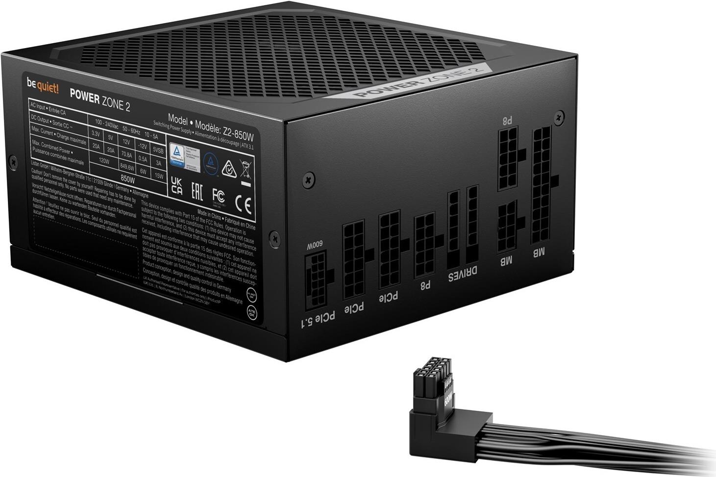 Das Netzteil be quiet! Power Zone 2 Z2-850W bietet eine zuverlässige und effiziente Lösung für die Stromversorgung von Hochleistungssystemen. Mit einer Leistung von 850 W und einer Effizienzklasse von 80 PLUS Platinum sorgt dieses Netzteil für eine effektive Energienutzung, minimiert Verschwendung und trägt zu niedrigeren Energiekosten bei. Der 140-mm-Lüfter mit semi-passivem Zero-RPM-Modus arbeitet leise und hält Ihr System kühl, wobei er bei geringer Auslastung nur 6,5 dB Geräuschemissionen erzeugt. Umweltzertifizierungen wie ENERGY STAR und Cybenetics Platinum unterstreichen das Engagement für umweltfreundliche Leistung.