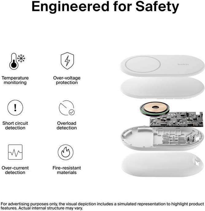 Die kabellose Ladestation BoostCharge von Belkin wurde für Mobiltelefone entwickelt und bietet ein nahtloses Ladeerlebnis mit einer Ausgangsleistung von 15 W. Ausgestattet mit einem USB-C-auf-USB-C-Kabel mit einer Länge von 1,55 m unterstützt diese Station schnelles Laden durch Power Delivery 3.1-Technologie und gewährleistet gleichzeitig Kompatibilität mit MagSafe. Die magnetische Ausrichtungsfunktion gewährleistet die richtige Positionierung der Geräte für optimales Aufladen.