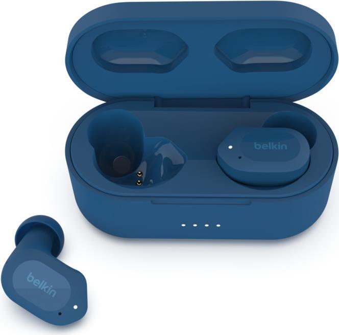 Da dieser Kopfhörer über zwei Mikrofone in jedem Ohrhörer, einen speziellen von Belkin entwickelten Algorithmus zur Geräuschunterdrückung und drei Equalizer-Voreinstellungen verfügt, verstärkt er die Klänge, die Sie hören möchten, aber unterdrückt störende Geräusche. Nach dem Aufladen sorgt der Akku für acht Stunden Betriebszeit, die über das USB-C-Ladecase sogar auf 38 Stunden verlängert werden kann. Das bedeutet, dass Sie den Kopfhörer wirklich rund um die Uhr nutzen können. Da der SOUNDFORM Play In-Ear-Kopfhörer entsprechend der Schutzart IPX5 spritzwassergeschützt ist und sich deshalb für Workouts und jede Wetterlage eignet, ist er der perfekte Begleiter im Alltag.