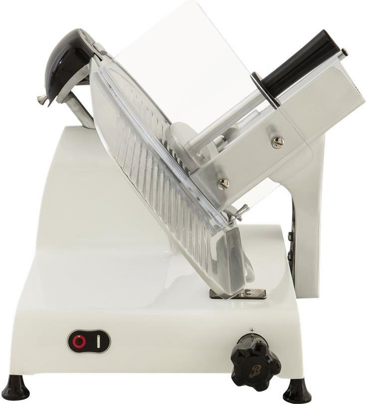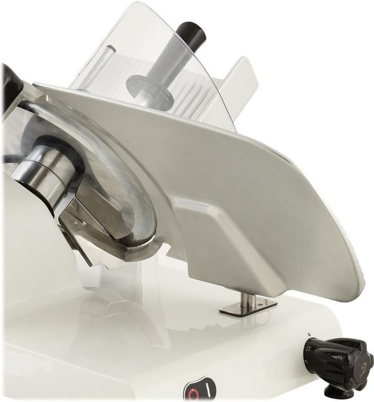 Das glatte Hohlschliffmesser sorgt für ein perfektes Schneidergebnis, reduziert Schneidabfälle und garantiert dünne und gleichmäßige Scheiben. Der integrierte Schleifapparat ermöglicht spielend leicht das hervorragende Schleifen des Messers und erhöht die Effizienz und Lebensdauer desselben.