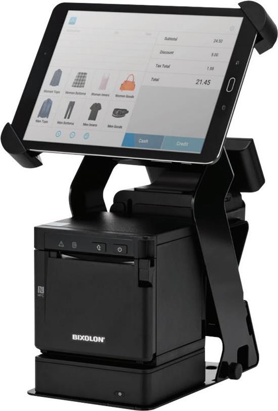 Der SRP-Q300H mit dem intelligenten BIXOLON Konnektivitäts-Hub B-gate lässt sich nahtlos (per Bluetooth-Kommunikation) mit dem Host-Tablet-Gerät verbinden und unterstützt dabei 1 Ladeanschluss und bis zu 4 USB-Peripheriegeräte (Scanner, Kassenschublade, Kundendisplay, RFID-Lesegerät, Waage usw.).