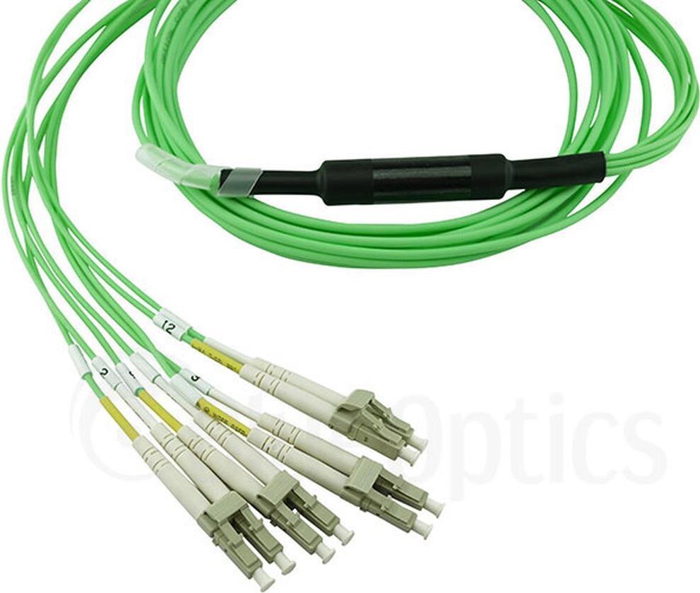 BlueOptics LWL Breakout Kabel, MPO/UPC, 4xDuplex LC/UPC, 3 Meter, Multimode G50/125µm, OM5, Markenfaser, 3.0mm LSZH limettengrün, 8 Kerne (Belegung 1-4 & 9-12, für QSFP Nutzung), inkl. Messprotokoll, MPO Stecker ohne Pins (SFP5141GU3MKB)