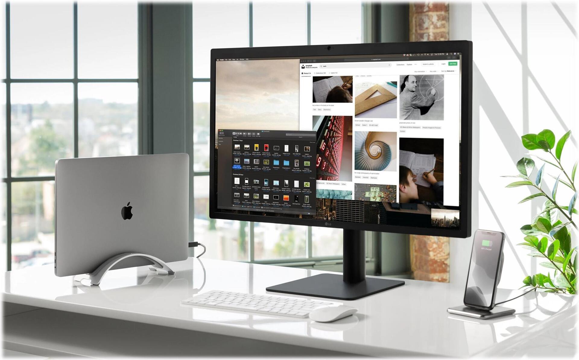 BookArc ist der kleine MacBook-Ständer, der Platz für einen großen Monitor schafft. Wie das geht? Er hält das MacBook vertikal und nicht auf dem Schreibtisch. Stellen Sie Ihr MacBook auf den BookArc, schließen Sie Ihren externen Monitor, Ihre Tastatur und Maus an. Jetzt haben Sie ein kompaktes Notebook in einen komfortablen Schreibtisch für zu Hause oder Ihr Büro verwandelt. Dinge wie Fotobearbeitung, Tabellenkalkulationen und andere Projekte sind auf einem hellen 24-Zoll-Bildschirm (oder größer) besser zu sehen. Wenn es an der Zeit ist, mobil zu werden oder zu einem Meeting zu gehen, ziehen Sie Ihre Desktop-Verbindungen ab und der BookArc Cable Catch hält sie für Sie an Ort und Stelle.