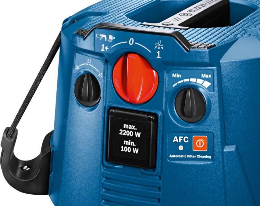 Der GAS 35 H AFC Professional ist für die Staubklasse H (Krebs und andere Krankheiten erzeugenden Staub) zertifiziert. Die L-BOXX kann für einen einfachen Transport auf den Nass-/Trockensauger geklickt werden. Alle Bosch Elektrowerkzeuge mit dem Click & Clean System können ohne Adapter direkt mit dem GAS 35 H AFC Professional verbunden werden.