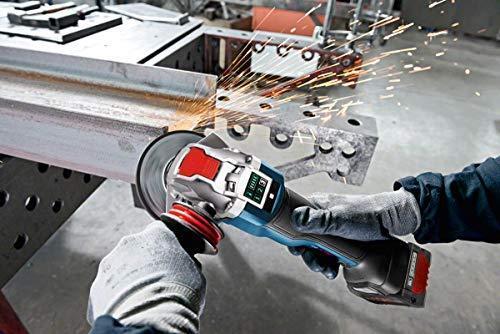 Der kleine Akku-Winkelschleifer GWX 18V-10 PSC Professional mit X-LOCK bietet verbesserte Leistungsfähigkeit und Werkzeugführung in der 18-Volt-Kategorie. Er bietet dank des bürstenlosen Motors und der ProCORE18V-Akkutechnologie dieselbe Leistung wie ein kabelgebundener Schleifer mit 1.000 Watt. Dieser kleine Winkelschleifer ist mit dem schlüssellosen Klick-System X-LOCK ausgestattet und ermöglicht so ein schnelles und bequemes Wechseln der Einsatzwerkzeuge. Sein Bluetooth Connectivity-Modul ermöglicht Anpassungen direkt über die Toolbox App, und eine Benutzeroberfläche mit Drehzahlvorwahl sorgt mit Aktivwerkzeug-Feedback für größtmöglichen Komfort. Das Werkzeug eignet sich zum Schneiden und Abschleifen von Metall, Stein und Beton. Es ist kompatibel mit den Staubabsaugvorrichtungen GDE 125 EA-T Professional und GDE 115 / 125 FC-T Professional sowie mit allen Bosch Professional 18-Volt-Akkus und -Ladegeräten (Flexible Power System).