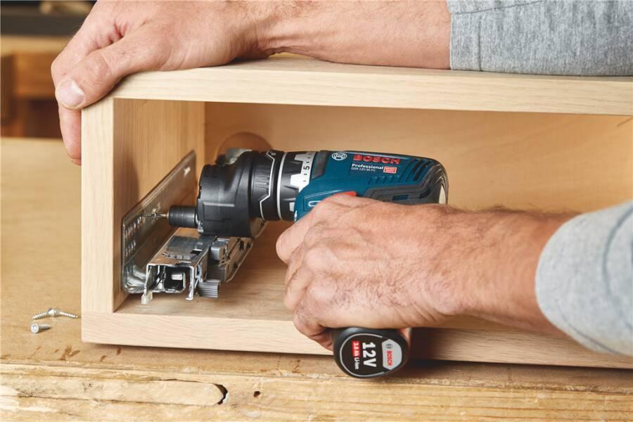 Der Akku-Bohrschrauber GSR 12V-35 FC Professional mit bürstenlosem Motor ist für jeden Einsatz das vielseitigste Werkzeug im 12-Volt-Segment. Sein FlexiClick System umfasst vier Zubehörteile, die einfach gewechselt, miteinander kombiniert und justiert werden können und so bis zu 8 Konfigurationen und damit hohe Flexibilität bieten. Extrem kompakt bei gleichzeitig hoher Leistungskapazität bietet das Werkzeug optimale Handlichkeit und eignet sich damit perfekt für Arbeiten an schwer zugänglichen Stellen. Sein bürstenloser Motor in Kombination mit Electronic Motor Protection bietet Schutz vor Überlastung und sorgt für eine längere Haltbarkeit des Werkzeugs. Dieses Werkzeug eignet sich perfekt zum Bohren und Schrauben in Holz und Stahl.