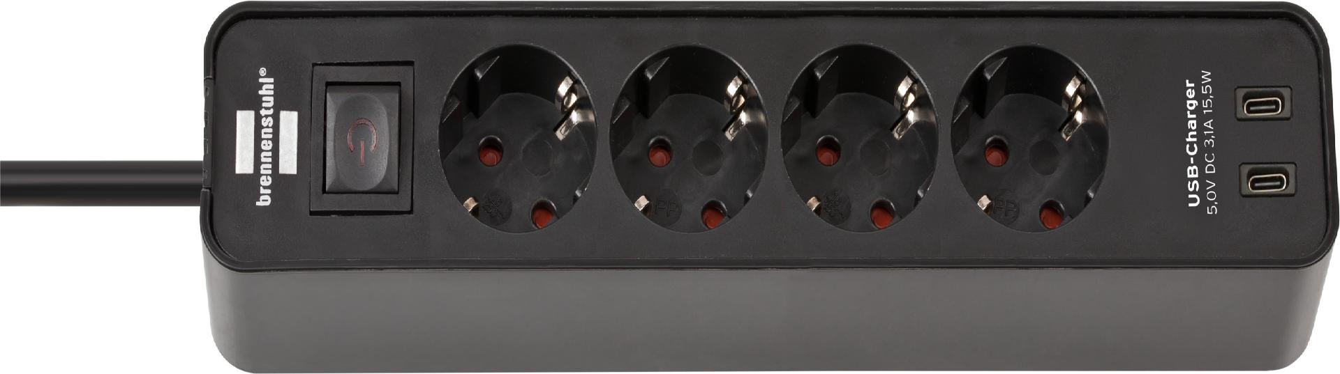 Brennenstuhl 1153240106 Steckdosenleiste mit Schalter Schwarz Schutzkontakt 1 St. (1153240106)