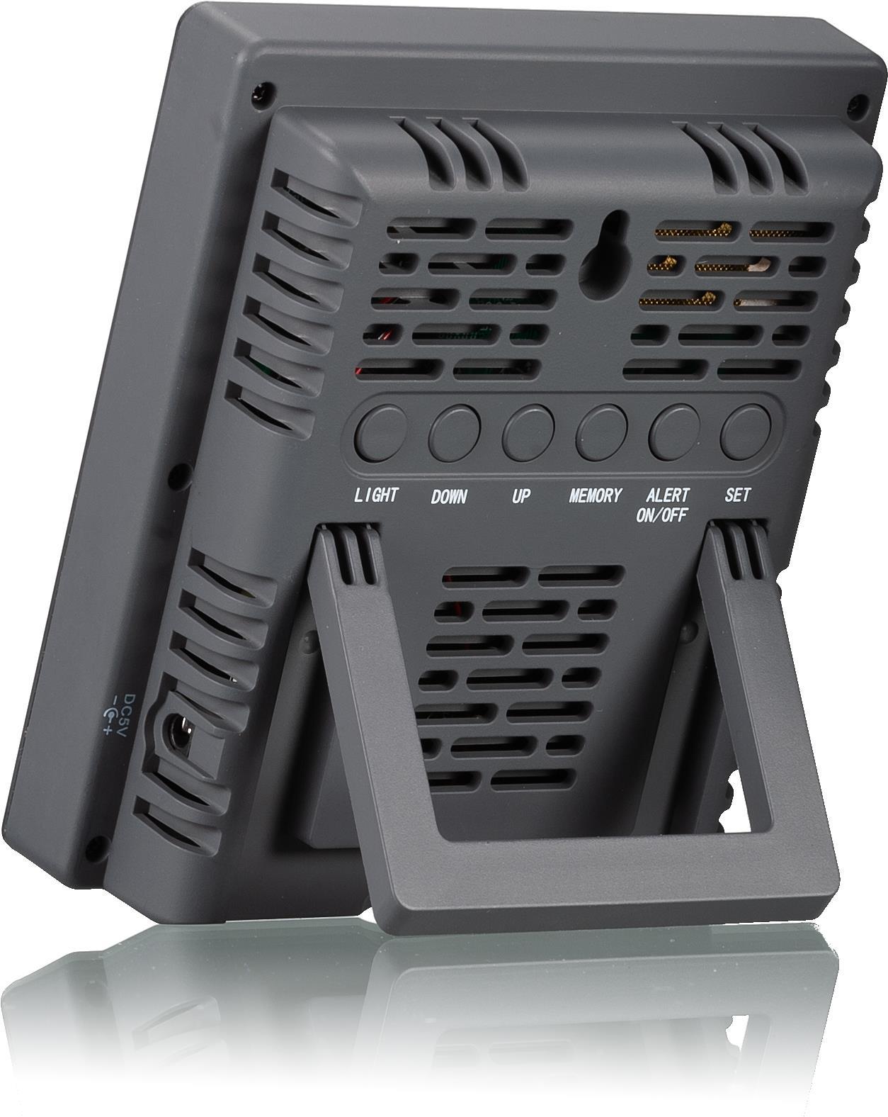 Der praktische Kohlendioxid-Alarm erinnert Sie daran, wenn Sie frische Luft hereinlassen müssen. Wenn die Standardeinstellung von Ihrem idealen Raumklima abweicht, können Sie Ihren eigenen Grenzwert bis zu einem Maximum von 5000 ppm einstellen. Die Alarmfunktion kann dann mit einem einfachen Tastendruck aktiviert werden. Wird der voreingestellte Grenzwert überschritten, ertönt der Alarm je nach CO2-Konzentration in unterschiedlicher Intensität. Auf dem Display erscheint außerdem ein blinkendes Pfeilsymbol, um Sie daran zu erinnern, die Fenster zu öffnen. Auch die Luftfeuchtigkeit ist ein wichtiger Faktor, denn eine hohe Luftfeuchtigkeit kann zu Schimmelbildung führen. Sie können auch einen eigenen visuellen Alarm für diesen Messwert einstellen, damit Sie wissen, ob die Luft im Raum zu trocken oder zu feucht ist. Wenn Sie mehr als nur die aktuellen Messwerte sehen wollen, gibt es auch eine praktische Speicherfunktion, die die Maximal- und Minimalwerte der letzten 24 Stunden sowie die Durchschnittswerte der letzten 15 Minuten und 8 Stunden für Kohlendioxidkonzentration, Temperatur und Luftfeuchtigkeit anzeigt. Das Gerät wird über ein Netzteil mit Strom versorgt, um einen Dauerbetrieb zu ermöglichen.