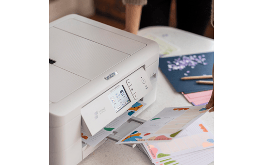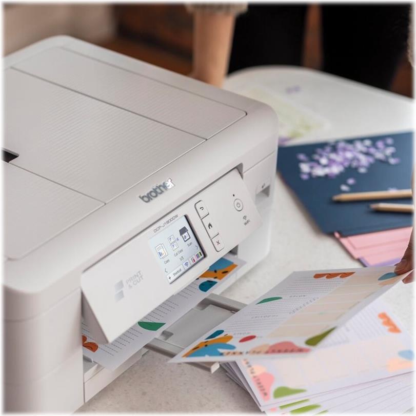 Das DCP-J1800DW ist ein kompaktes Gerät, das sich perfekt für den Heimgebrauch eignet. Drucken Sie in lebendigen Farben von überall zu Hause aus, über WLAN - bequem vom PC, Smartphone oder Tablet. Drucken Sie Ihre persönlichen Einladungen oder Flyer im Format DIN A5, dank der integrierten Schneidefunktion.