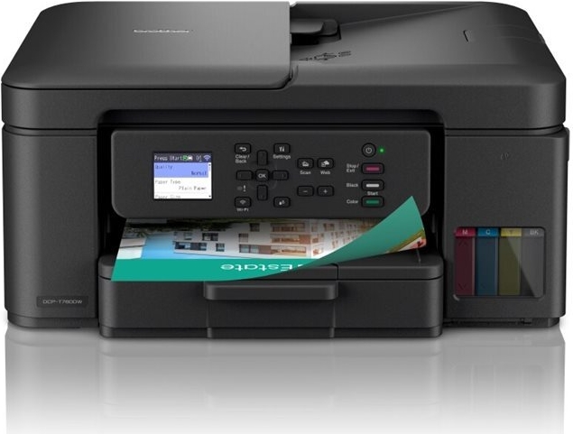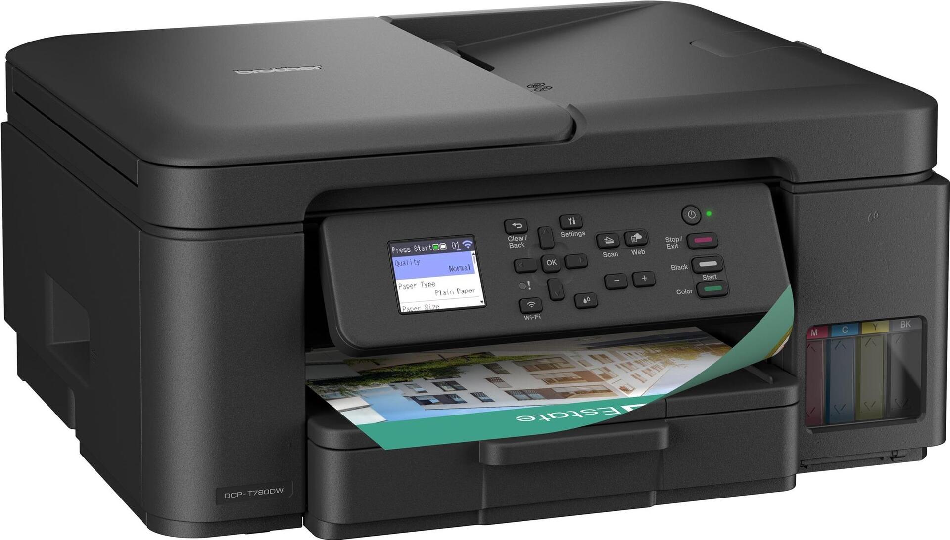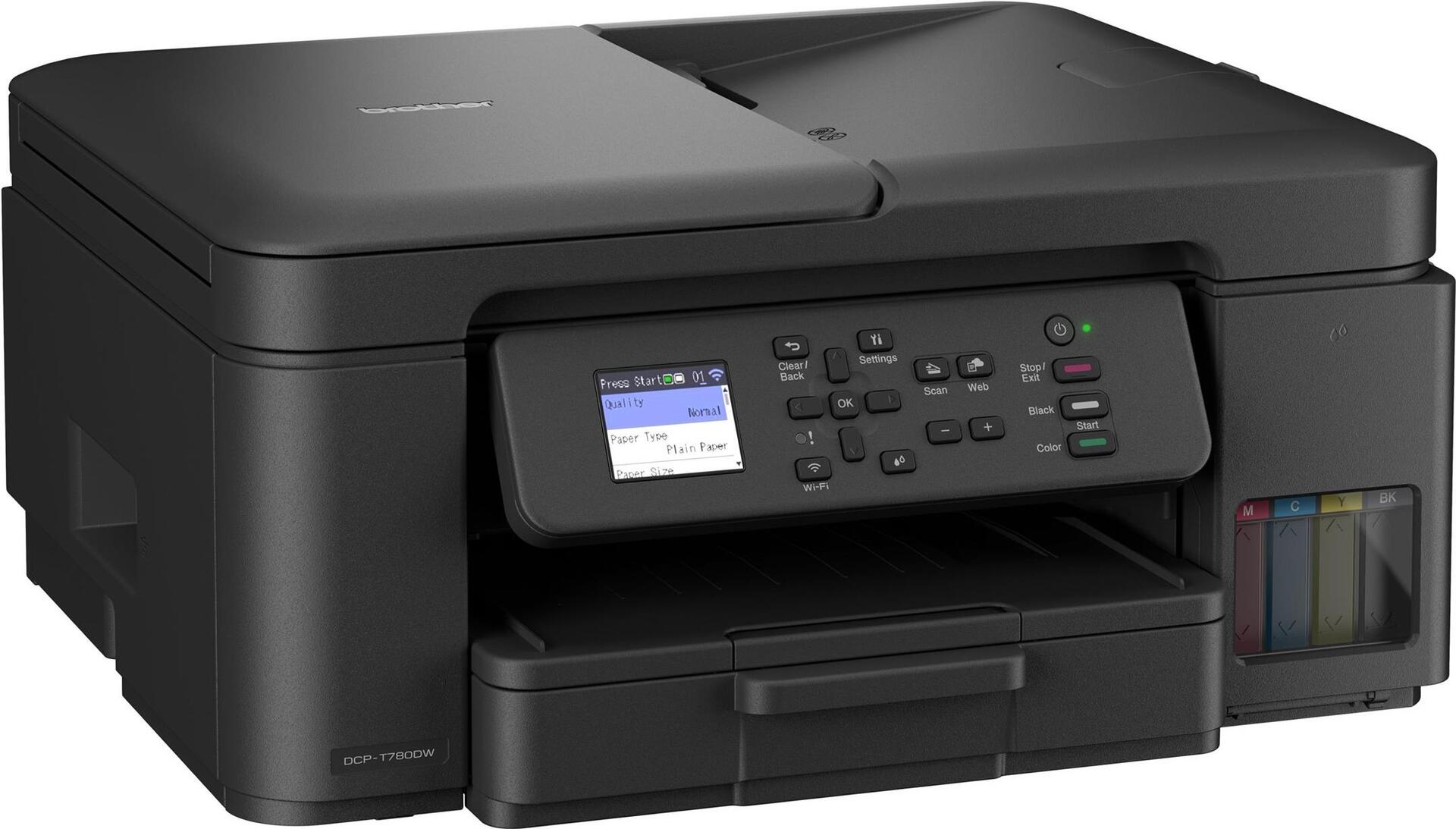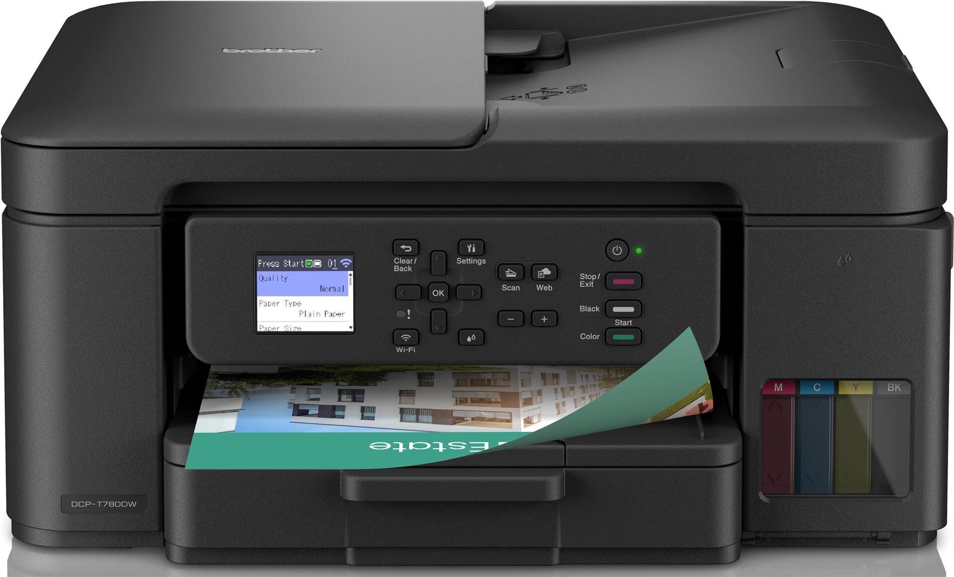 Der Brother DCP-T780DW ist ein vielseitiger All-in-One-Drucker, der Druck-, Scan- und Kopierfunktionen in einem kompakten Gerät vereint. Er bietet drahtlose Verbindungsoptionen wie WLAN und Apple AirPrint und ermöglicht so mobiles Drucken. Mit einer maximalen Druckauflösung von 1200 x 6000 DPI für Schwarzweiß und Farbe sorgt dieser Drucker dafür, dass Bilder und Dokumente präzise und detailreich wiedergegeben werden. Das Gerät verfügt über ein benutzerfreundliches 1,8-Zoll-LCD-Display, das die Bedienung vereinfacht. Es unterstützt eine Vielzahl von Medientypen und -größen und ist somit die ideale Wahl für den Einsatz zu Hause oder im Büro. Dank seines nachfüllbaren Tintenbehältersystems können Benutzer kostengünstig drucken, ohne häufig die Patronen austauschen zu müssen. Ausgestattet mit Funktionen wie automatischem Duplexdruck, einem automatischen Dokumenteneinzug für 20 Blatt und einem 150-Blatt-Papierfach bietet der Brother DCP-T780DW ein ausgewogenes Verhältnis zwischen Produktivität und Benutzerfreundlichkeit.