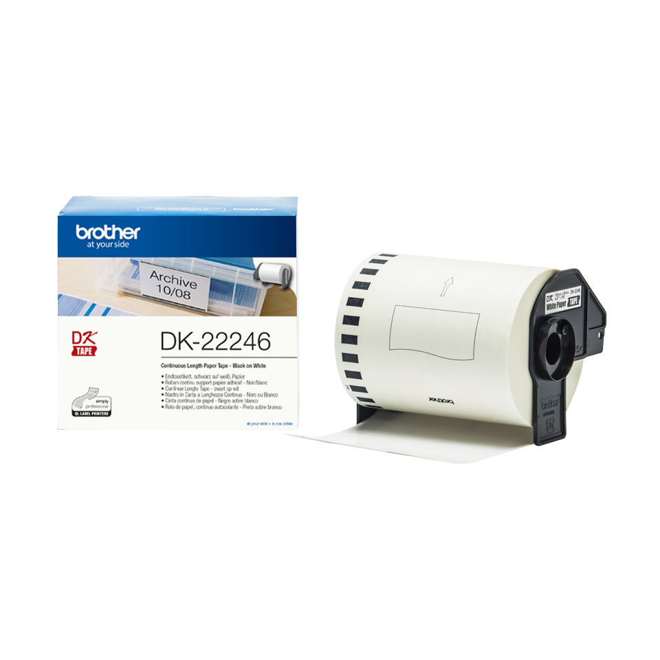 Mit der Original Brother DK-22246 Endlosetikettenrolle können Sie selbstklebende Papieretiketten aller Art drucken und damit zahlreiche Utensilien wie Umschläge, Ordner oder Regale beschriften. Erstellen Sie beliebig große Etiketten, indem Sie sie einfach auf die gewünschte Länge zuschneiden.