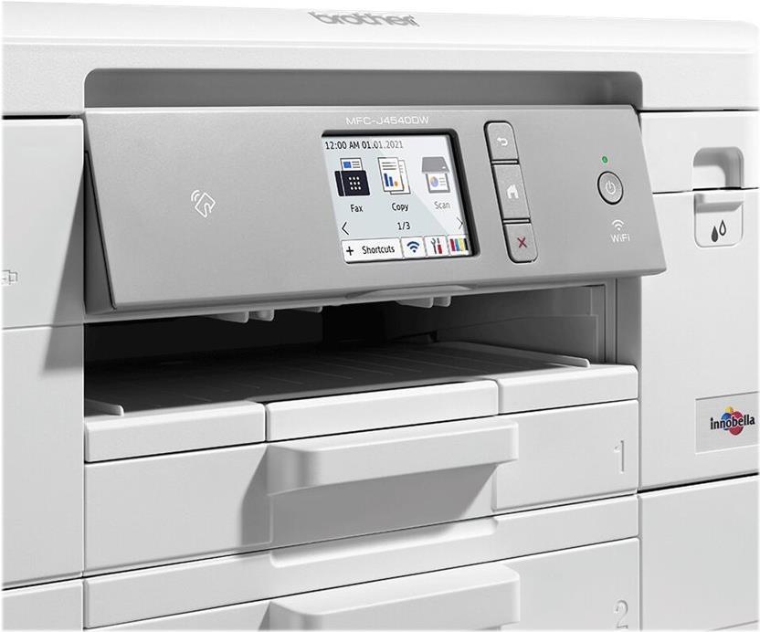 Das kompakte MFC-J4540DW ist ein Multifunktionsgerät in Business-Qualität, das eine Druck-, Kopier-, Scan- und Faxfunktion vereint. Drucken Sie dank der WLAN-Schnittstelle direkt vom Arbeitsplatz, von überall im Haus oder von Ihrem mobilen Gerät aus. Dank der NFC-Schnittstelle können Sie auch schnell und einfach von Ihrem Smartphone drucken.