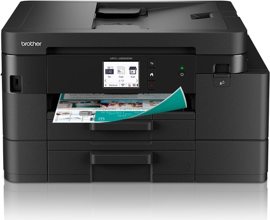 Der Brother MFC-J4550DW bietet vielseitige Funktionen für nahtloses Faxen, Kopieren, Drucken und Scannen. Dank drahtloser Verbindungsoptionen wie USB 2.0 und Wi-Fi Direct können Benutzer Dokumente ganz einfach von ihren Mobilgeräten oder Computern aus drucken und teilen. Die automatische Duplexfunktion erhöht die Effizienz, ermöglicht doppelseitiges Drucken und Kopieren und spart so Zeit und Papier. Eine benutzerfreundliche Touchscreen-Oberfläche vereinfacht die Navigation und erleichtert den Zugriff auf verschiedene Funktionen und Einstellungen. Dieser Multifunktionsdrucker ist für eine Vielzahl von Medientypen und -größen ausgelegt, von Umschlägen bis hin zu Fotopapier, und kann bis zu 2000 Seiten pro Monat verarbeiten. Hochwertige Druck- und Kopierqualität wird mit einer maximalen Auflösung von bis zu 1200 x 4800 DPI für Farbe und 1200 x 2400 DPI für Schwarzweiß erreicht. Mit umfassenden Sicherheitsprotokollen sorgt der Brother MFC-J4550DW dafür, dass sensible Dokumente sicher aufbewahrt werden, und ist damit eine zuverlässige Wahl für zu Hause und im Büro.