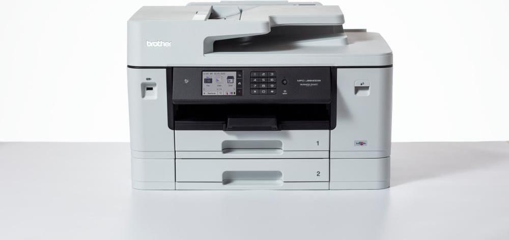 Das MFC-J6940DW ist der leistungsstarke und zuverlässige Helfer für alle Aufgaben im kleinen Büro. Über LAN oder WLAN ins Netzwerk eingebunden, greifen mehrere Nutzer bequem auf das Gerät zu. Dank der kostenlosen App Brother Mobile Connect haben Sie auch von unterwegs die Möglichkeit über Ihr Mobiltelefon oder Tablet zu drucken und zu scannen. Dank der neuen Maxidrive Drucktechnologie erhalten Sie langlebige und professionelle Ausdrucke bis zu DIN A3. Ausgestattet mit einer Papierkapazität von bis zu 600 Blatt und optionalen XL-Tintenpatronen mit hoher Reichweite, drucken Sie länger und ohne zeitraubende Unterbrechungen. Der 50 Blatt Duplex-ADF erlaubt es Ihnen schnell und beidseitig Ihre Dokumente zu scannen, zu kopieren oder zu faxen - und das sogar bis zum Format DIN A3.