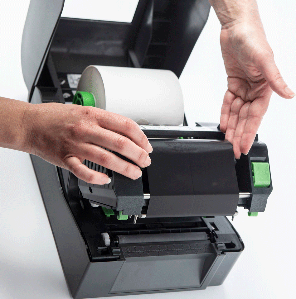 Mit dem schlanken Design des Etikettendruckers TD-4520TN lassen sich bis zu 300 m Farbband- und Etikettenrollen nutzen. Der maximale Durchmesser der Rolle von 127 mm lässt sich mit einer externen Etikettenrollen-Halterung bis auf 203,2 mm erweitern, sodass Sie auch Rollen nutzen können, die für Industrie-Etikettendrucker konzipiert sind. Der bewegliche Blackmarksensor ist kompatibel mit zahlreichen Etikettenmedien.