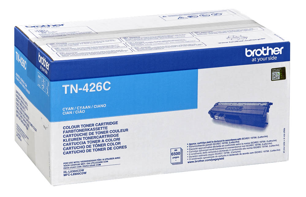 Die TN-426C Super-Jumbo-Tonerkassette genügt höchsten Qualitätsansprüchen und bietet eine hohe Reichweite. Diese Super-Jumbo-Tonerkassette ist kompatibel mit den Geräten HL-L8360CDW, MFC-L8900CDW und hat eine Reichweite von 6.500 Seiten, gemäß ISO/IEC 19798.