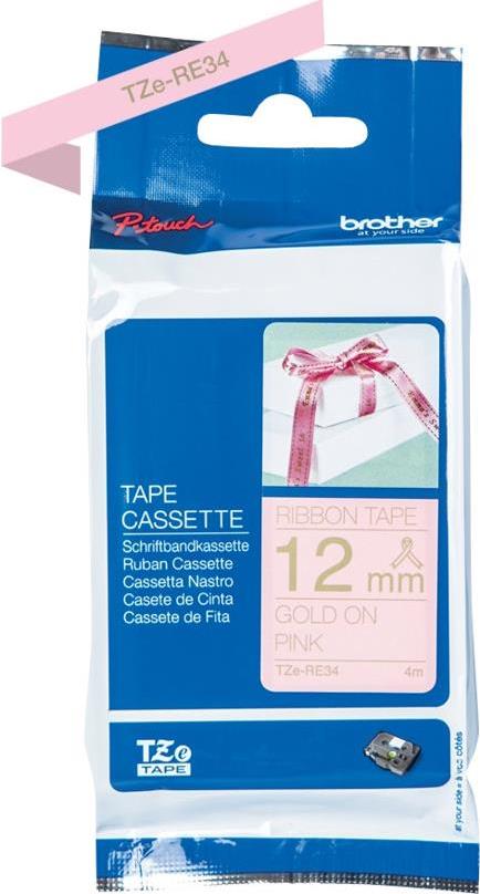 Brother TZeRE34 - Gold auf Pink - Rolle (1,2 cm x 4 m) 1 Rolle(n) Band - für P-Touch D600, PT-2100, 2700, 2730, 9600, 9700, 9800, D450, D600, E100, E300, E550