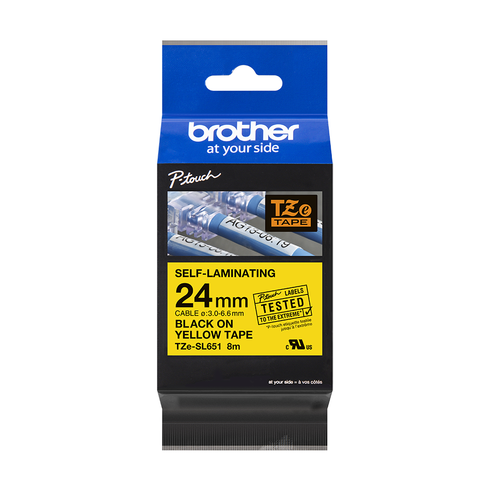 Brother TZe-SL651 - Selbstklebend - Schwarz auf Gelb - Rolle (2,4 cm x 8 m) 1 Rolle(n) laminiertes Band - für P-Touch PT-D800W, PT-E550WSP, PT-E550WVP, PT-P900W, PT-P950NW (TZESL651)