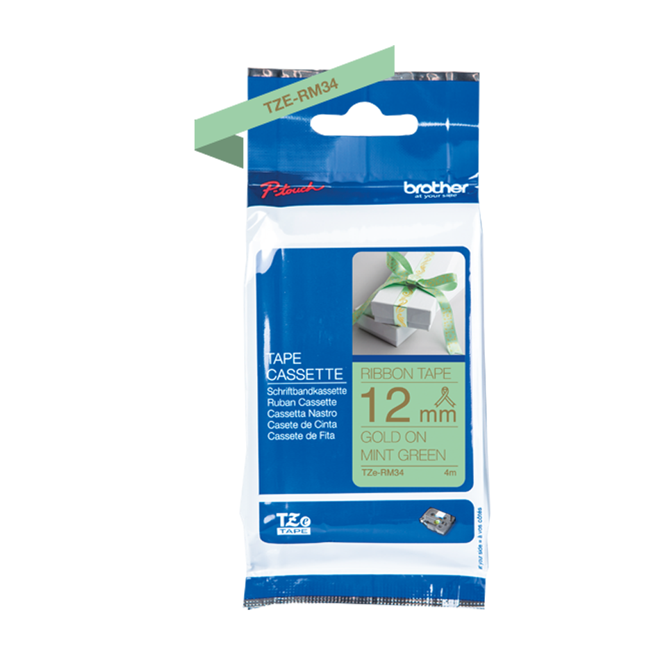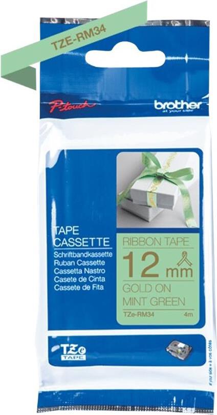 Brother TZe-RM34 - Seidig - Gold auf Mintgrün - Rolle (1,2 cm x 4 m) 1 Rolle(n) Band - für P-Touch Embellish