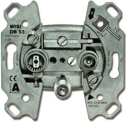 Busch-Jaeger 0230-0-0384. Buchsen-Typ: SAT + TV + Radio. Produktfarbe: Metallisch. Eingangsfrequenz: 47 - 2150 Hz. Breite: 70 mm, Tiefe: 69 mm, Höhe: 22 mm (0230-0-0384)