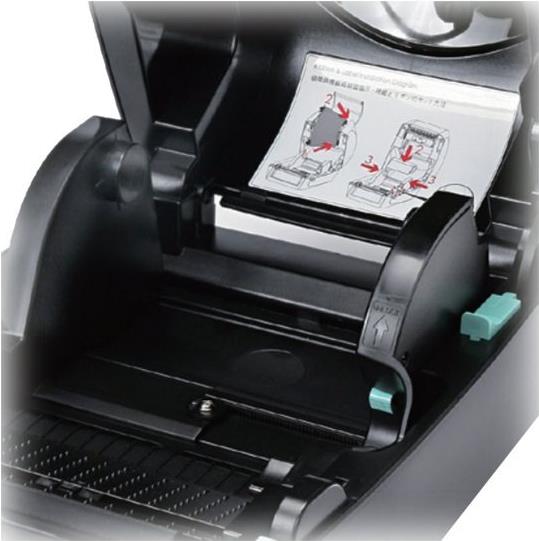 - Rollenhalter ohne Stab für einfaches Einlegen von Etiketten und geraden Einzug.