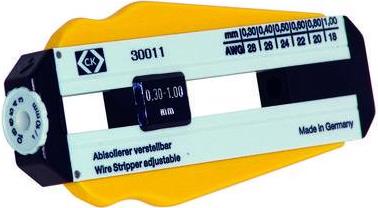Abisolierwerkzeug - einstellbar für 6 Kabeldurchmesser Ø 0,30 - 1,00 mmKompakter und präziser Drahtabisolierer für wiederholbares beschädigungsfreies Abisolieren von PVC, Teflon und ähnlich isolierten Drähten. Abgestufter Tiefenanschlag zum Abisolieren auf präzise Längen. Induktionsgehärtete Stahlklingen für überragend langfristige Funktion.Einstellbar auf 6 Drahtdurchmesser zur Abisolierung.Technische Daten: Typ (Hersteller-Typ): 330011Weitere technische Daten: Kapazität: 0.30 - 1.00mm