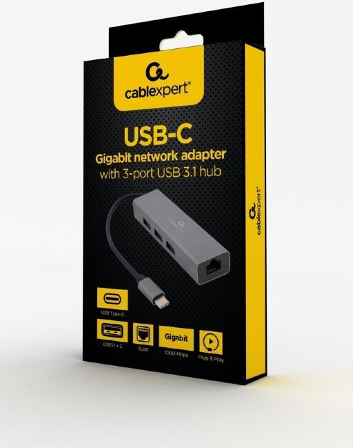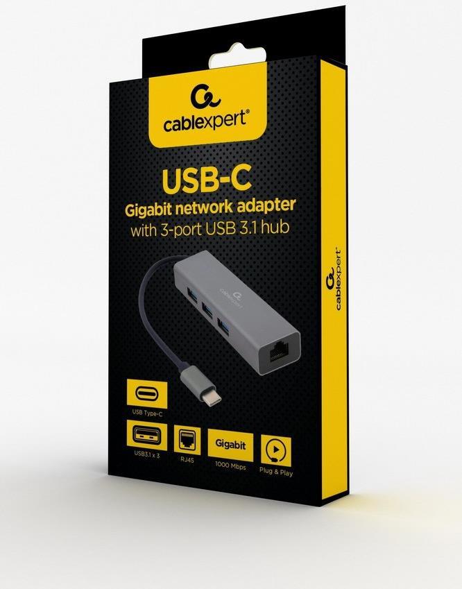 Gembird A-CMU3-LAN-01 Schnittstellen-Hub USB 3.2 Gen 1 (3.1 Gen 1) Type-C 5000 Mbit/s Grau (A-CMU3-LAN-01)