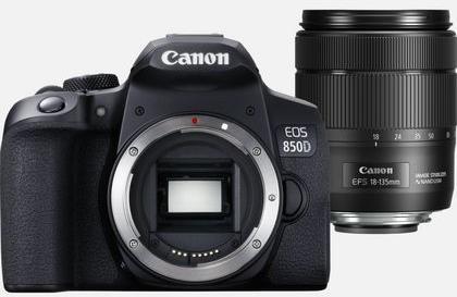 Canon EOS 850D - Digitalkamera - SLR - 24.1 MPix - APS-C - 4K / 30 BpS - 7.5x optischer Zoom EF-S 18 - 135 mm IS USM-Objektiv - Wi-Fi, Bluetooth - Schwarz (3925C020)