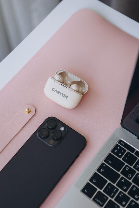 Canyon CNS-TWS10BG Kopfhörer & Headset True Wireless Stereo (TWS) im Ohr Anrufe/Musik/Sport/Alltag USB Typ-C Bluetooth Beige (CNS-TWS10BG)