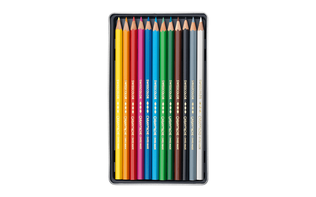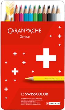 CARAN D'ACHE Buntstifte Swisscolor, 12er Metalletui wasserfeste Farbstifte, aus Zedernholz, hexagonaler Schaft, - 1 Stück (1284.712)