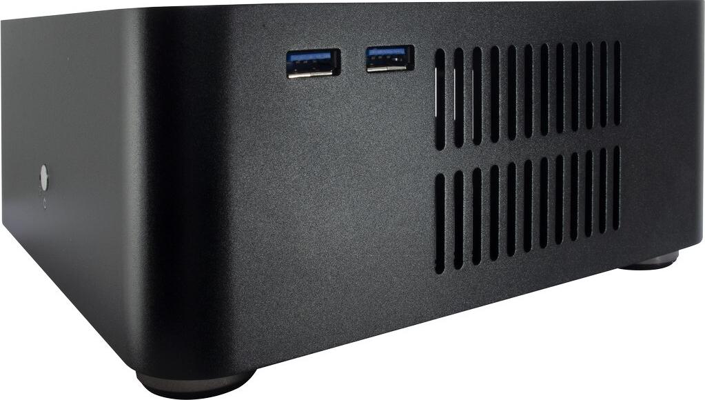 Vollständig aus Aluminium gefertigt, bietet es zusätzlich durch diverse Lüftungsöffnungen eine perfekte, thermische Entlastung. Seine schlichte Formensprache lässt es zudem zeitlos elegant wirken.Systeme auf Mini-ITX Basis können sehr energiesparend konstruiert werden, so dass das serienmäßige, externe 60W Netzteil meist ausreicht um einen leistungsfähigen ITX-Rechner zu betreiben. Die interne Pico-PSU Platine ist jedoch in der Lage auch Eingangsspannungen von bis zu 120W zu verarbeiten.