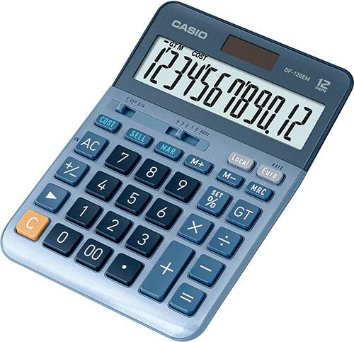 Casio DF-120EM - Desktop-Taschenrechner - 12 Stellen - Solarpanel, Batterie - Blau (DF-120EM)