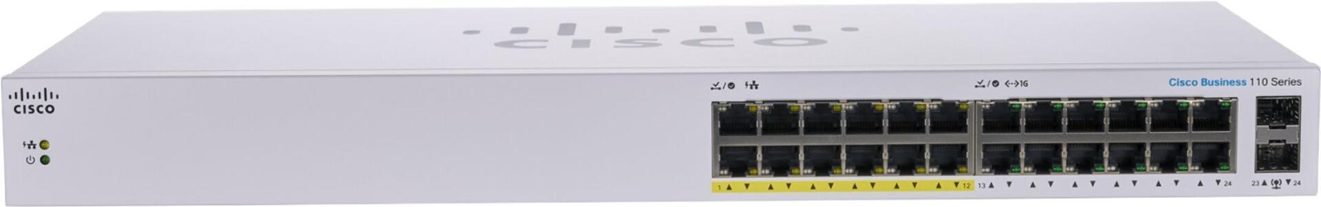 | Produktbeschreibung | Cisco Business 110 Series 110-24PP - Switch - 24 Anschlüsse - unmanaged - an Rack montierbar |