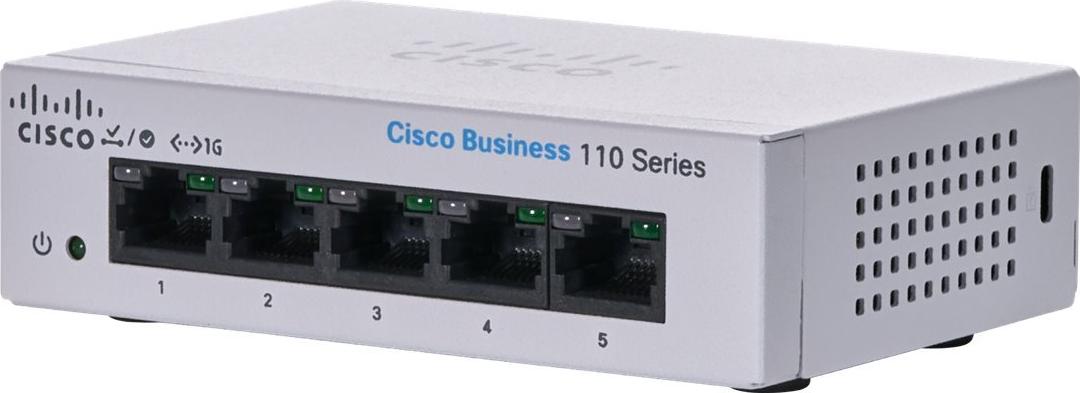 | Produktbeschreibung | Cisco Business 110 Series 110-5T-D - Switch - 5 Anschlüsse - unmanaged - an Rack montierbar |