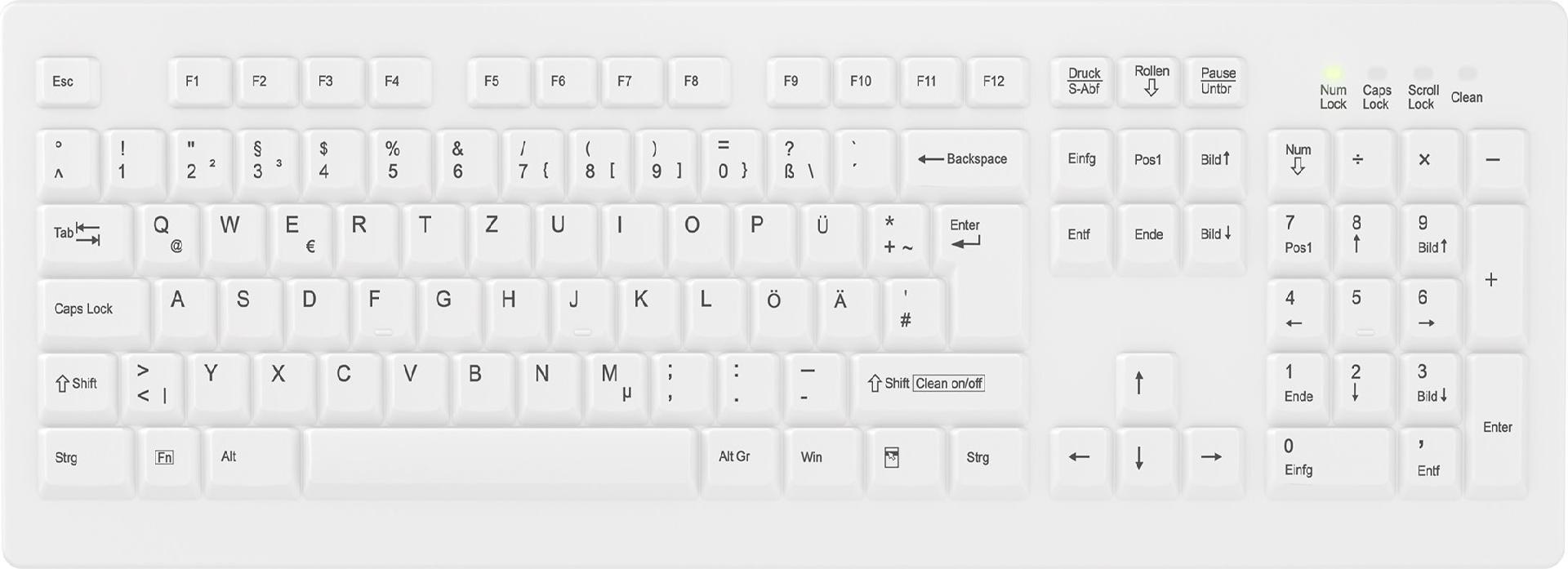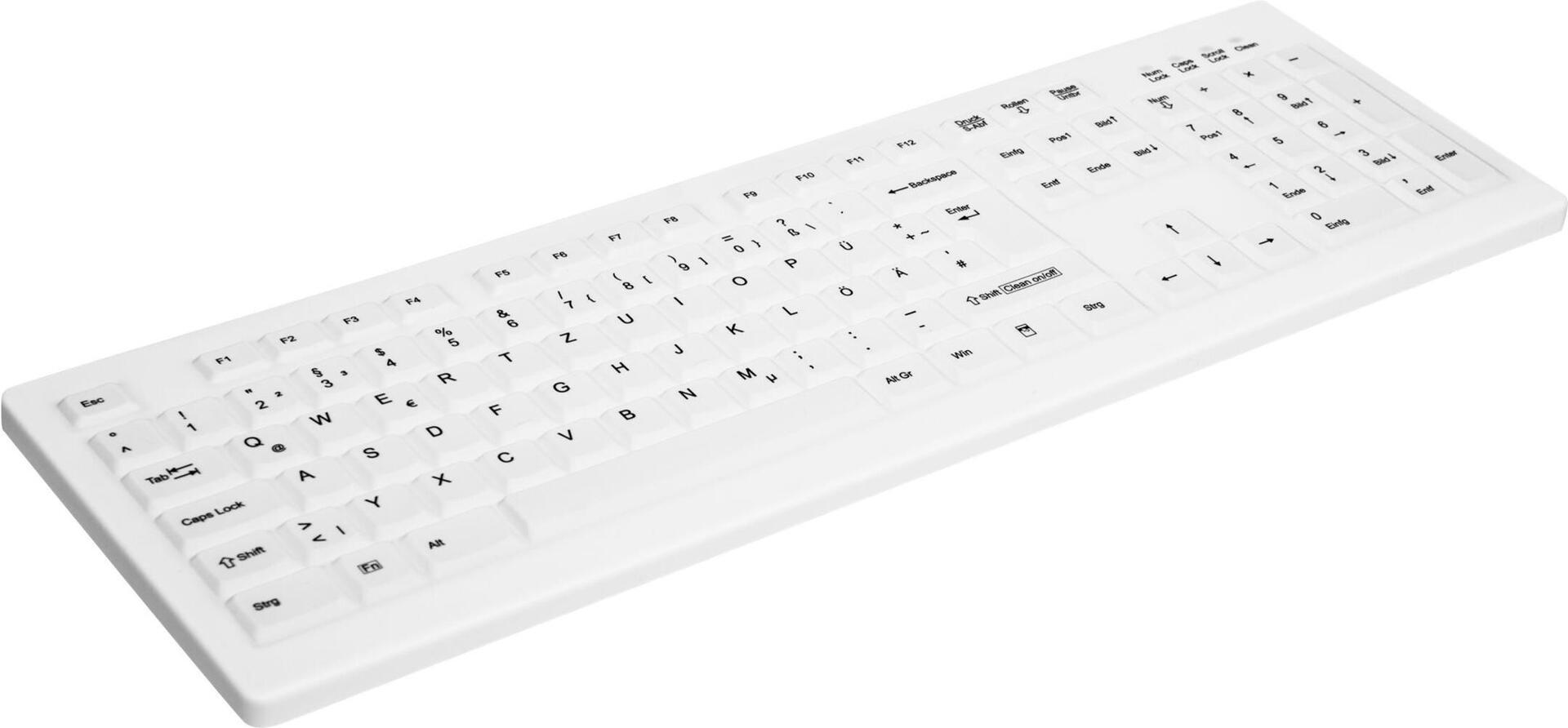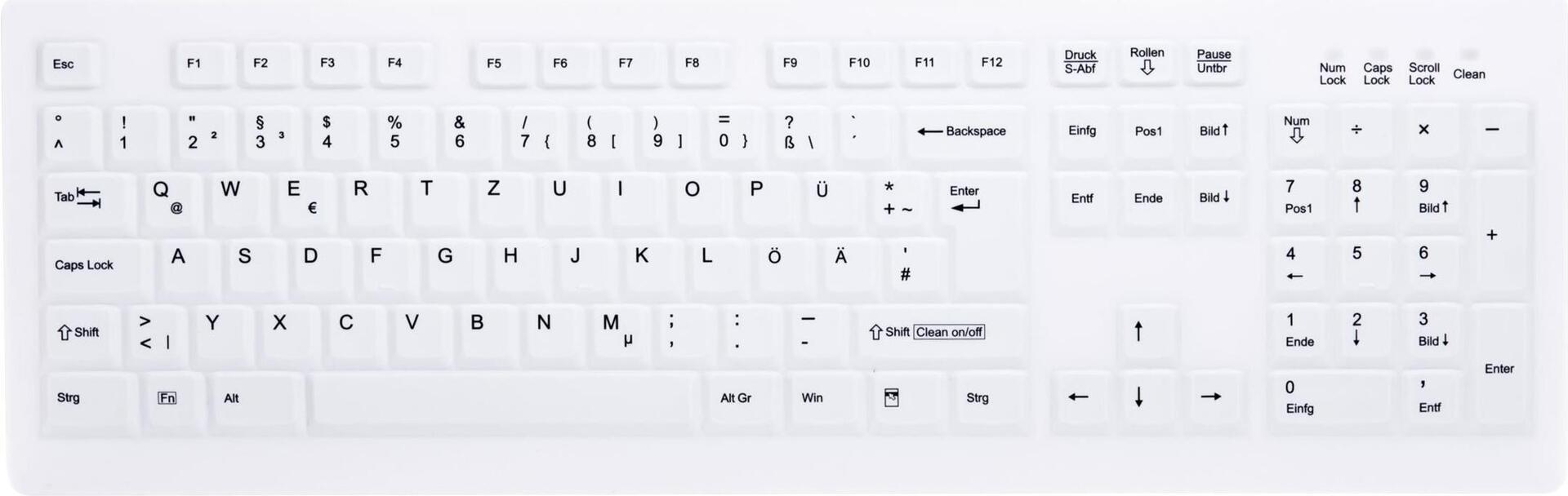 Die AK-C8100-Wireless ist eine hochwertige, kabellose PC-Tastatur im vollen Layout. Die Silikonmembran schützt das Tastenfeld gegen Eindringen von Schmutz und Flüssigkeiten. Dank des leichten Tastenanschlags und der präzisen Tastenführung ist die AK-C8100 für den Einsatz in hygienekritischen Umgebung unbedingt zu empfehlen.