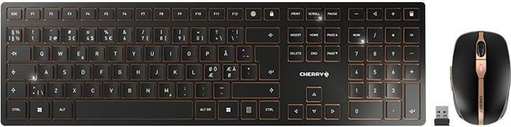 | Produktbeschreibung | CHERRY DW 9100 SLIM - Tastatur-und-Maus-Set - Pan-Nordic - schwarz/bronze Eingabegerät |