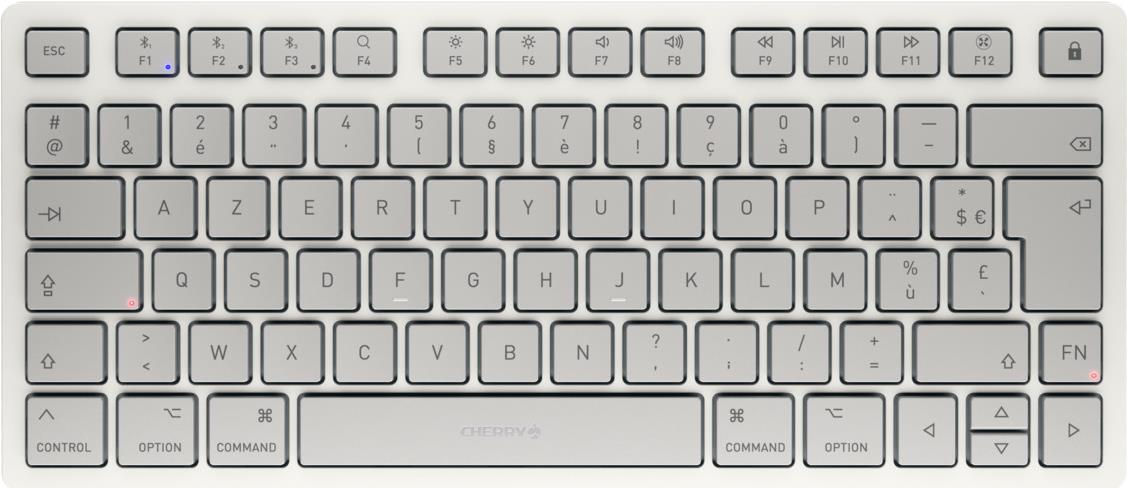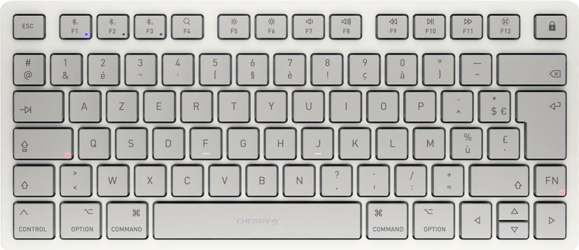 CHERRY KW 7100 Mini - Tastatur - for MAC - 75% - compact - kabellos - Bluetooth 5.1 - AZERTY - Französisch - Tastenschalter: CHERRY SX - Mondlichtweiß - plastikfreie Verpackung (JK-7110FR-25)