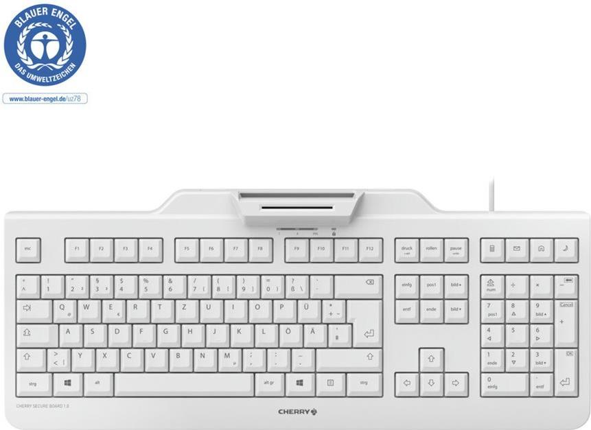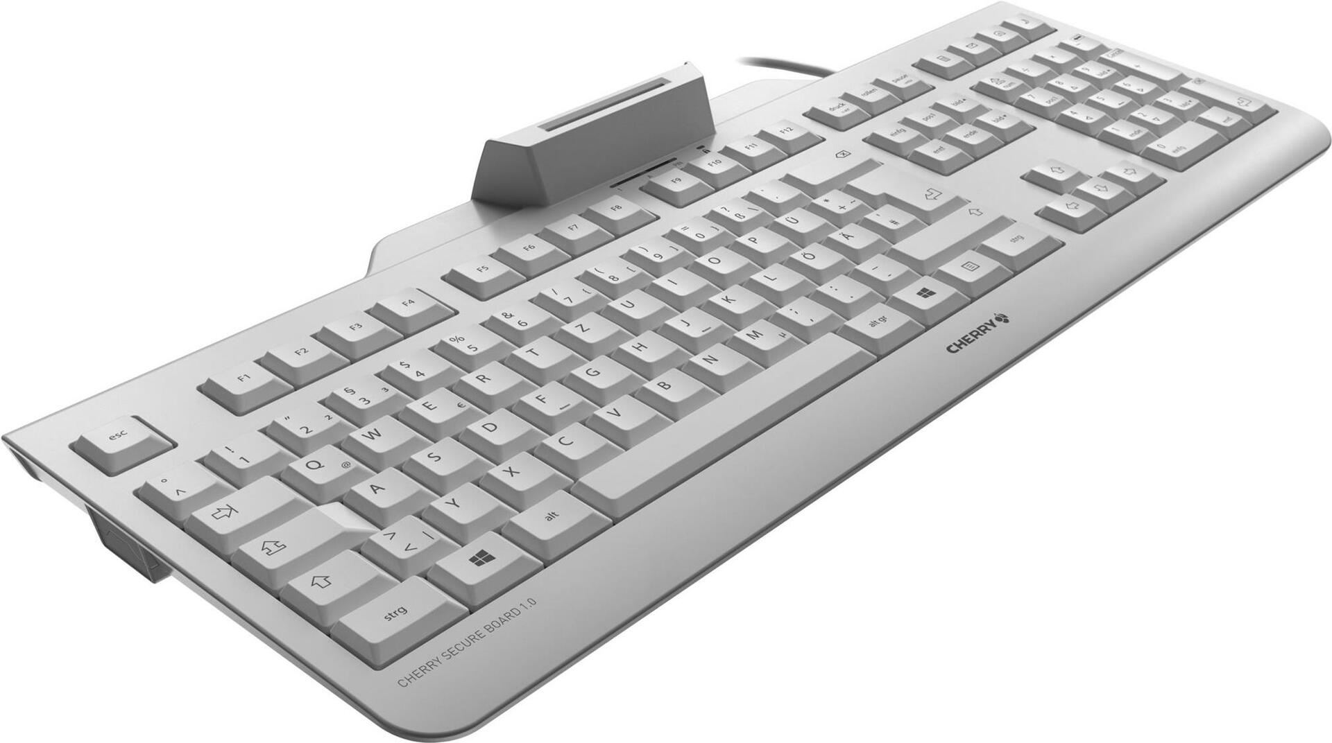 CHERRY SECURE BOARD 1.0 - Tastatur - mit NFC, Smart Card reader (CCID) - USB - Schweiz - Schlüsselschalter: CHERRY LPK - Weiß/Grau (JK-A0400CH-0)