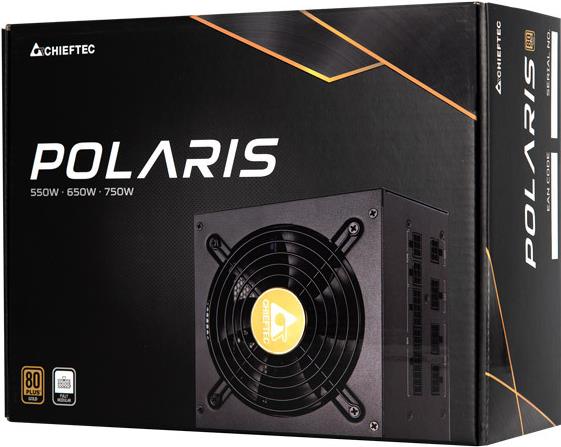 Die Polaris Serie bringt CHIEFTECs vertraute und bewährte Erfahrung bei qualitativ hochwertigen 80 PLUS Gold zertifizierten, vollmodularen Netzteilen zurück an die Spitze der modernen Technik. Netzteile der Polaris Serie bieten modernes technisches Design wie LLC Half-Bridge, Spannungswandlern mit DC-to-DC Technologie, als auch einer hohen Power-Density für höhere Effizienz und Leistung bei kompakter Bauform.Mit einer Netzteillänge von nur 140 mm und vollmodularem Kabelmanagement lässt sich die Polaris Serie sehr leicht in jedes System integrieren, dass den ATX Formfaktor unterstützt. Kabellängen von bis zu 650 mm erlauben eine problemlose Installation auch in großen Gehäusen. Dabei spielt es keine Rolle, ob ein kompaktes Netzteil für kleine Systeme benötigt wird oder lange Kabel für größere Systeme, die Netzteile der Polaris Serie bringen Flexibilität bei modernster Leistung und Effizienz.