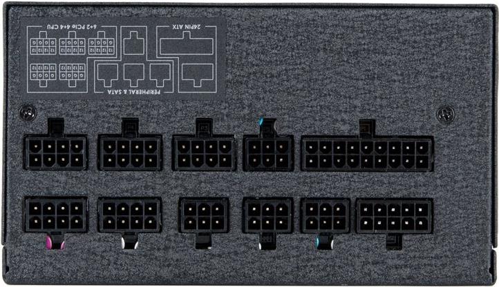 | Ausgabeanschlussstellen | 1 x Strom 24-poliges ATX mit abnehmbarer 4-poliger Sektion 2 x Strom 8-poliges EPS12V mit abnehmbarem 4-poligem ATX12V-Bereich 3 x interne Stromversorgung, 4-polig 9 x 15-Pin-SATA-Stromstecker 6 x 8-poliger PCI Express Power mit abnehmbarer 2-poliger Sektion 1 x 4-Pin-Mini-Stromversorgungsstecker |