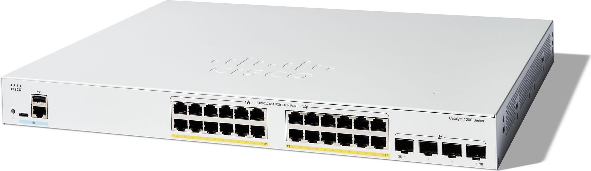 Cisco Catalyst 1200-24FP-4G Switch, Netzkabel, Rack-Montageset, USB Typ-C Kabel, Kurzanleitung |