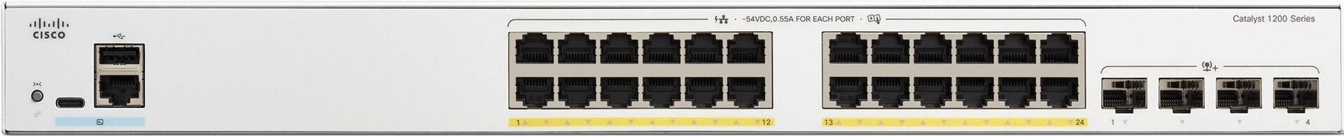 CISCO Catalyst 1200 24-Port Switch / PoE+ with 375W power budget / 4 x 10G SFP+ Uplinks (C1200-24FP-4X)