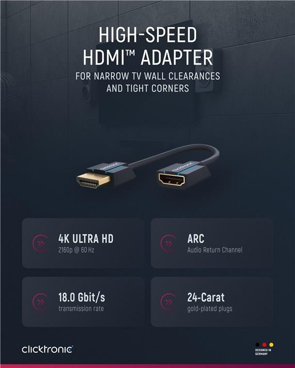 ClickTronic 70700 - HDMI - HDMI - Männlich/weiblich - Blau - Kupfer - 0,1m (70700)