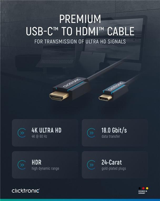 Clicktronic USB-C to HDMI Cable. M/M. Blue. 2.0m (44929)